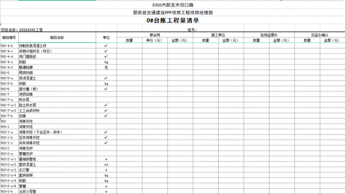 在闡述“0#”臺賬對公路工程項目管理的作用之前,有必要先對“0#”臺賬的含義進行說明,目前在我國行業(yè)的相關規(guī)范中,并無“0#”臺賬的專業(yè)術語和定義,每一個項目都可以根據自身的項目管理特點對其進行定義。所謂“0#”是根據時間的先后順序來說的,初始的臺賬叫“0#”臺賬,進入實施階段后,根據設計變更,還可能會有“0-1#”“0-2#”“1#”等臺賬,不同項目各有不同。